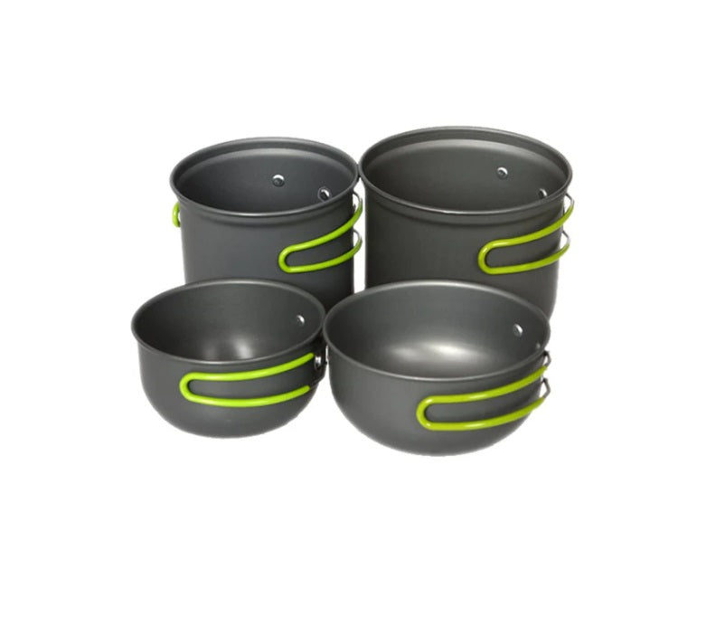 Includes four pieces: small billy, medium billy, and two corresponding multi-purpose lids (which can double as saucepans)